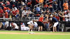 The raccoon's position indicated that he was probably more scared than embarrassed — but he's OK now.