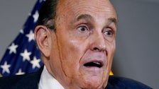 The former New York mayor had a bizarre cosmetic malfunction during his conspiracy-filled news conference.