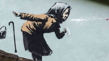 "Aachoo!!” the British street artist captioned his latest piece in his home city of Bristol.