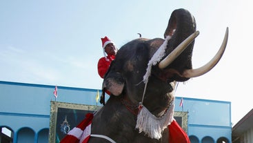 The pachyderms were decked out in tinsel and trunk masks and practiced proper social distancing.