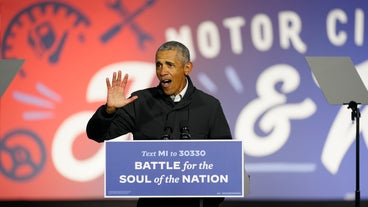 At a drive-in rally for Joe Biden, the former president went after Trump's failures on the coronavirus pandemic.