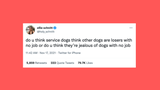 "do u think service dogs think other dogs are losers with no job or do u think they’re jealous of dogs with no job"