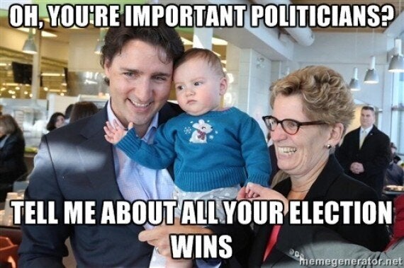 This is what happens when a politician poses with a baby in the 21st century.