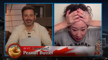 Trying to figure out whether peanut butter is Canadian almost broke her, but she answered correctly.