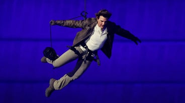 While Sunday's closing ceremony mirrored something out of "Mission: Impossible," it was ultimately inspired by a 15-year-old talk show bit.