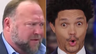 The "Daily Show" host spots "one of the funniest moments" of Jones' defamation trial.