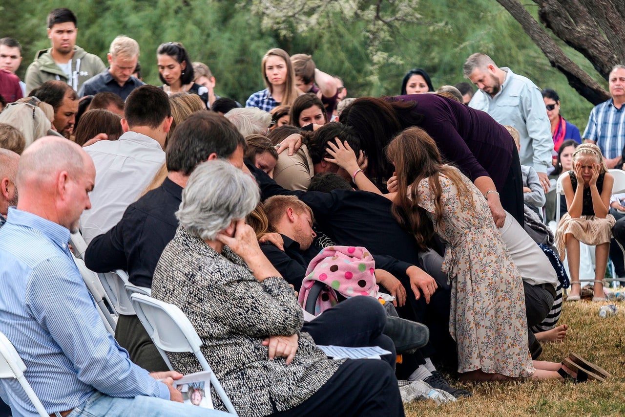 Relatives and friends mourn during the funeral service for Dawna Ray Langford and her sons Trevor and Rogan at La Mora Ranch in the municipality of Bavispe, Sonora State, Mexico, on Nov. 7, 2019. They were among the nine people killed on Nov. 4 in an attack that authorities have blamed on a drug cartel.
