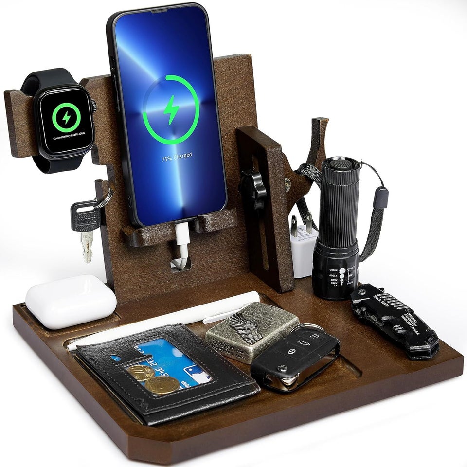 If you're shopping for someone who prefers an organized space at their bedside or in their office, this nightstand or desk organizer may come in handy. Available in four colors, the wooden organizer features — among other things — a U-shaped charging port for their phone, a watch holder, key holder, jewelry holder and a couple different tray areas where they can store their wallet, car keys, AirPods and so much more.