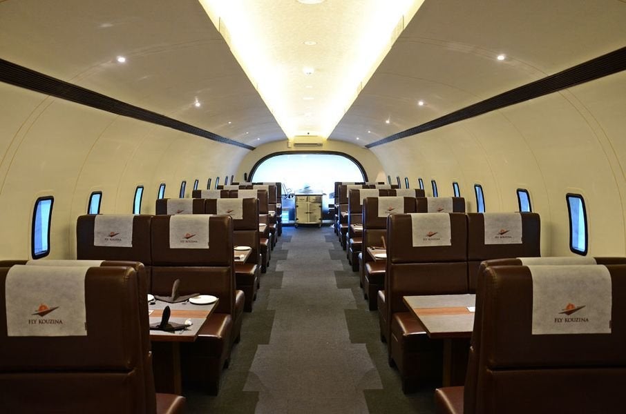 Airplane food isn't known for tempting tastebuds, but one restaurant is trying to make you crave the stuff in real life. At "Fly Kouzina," an airplane-themed eatery in Kolkata, India (formerly known as Calcutta), the motto is: "First class services without actually getting 35,000 feet off the ground."