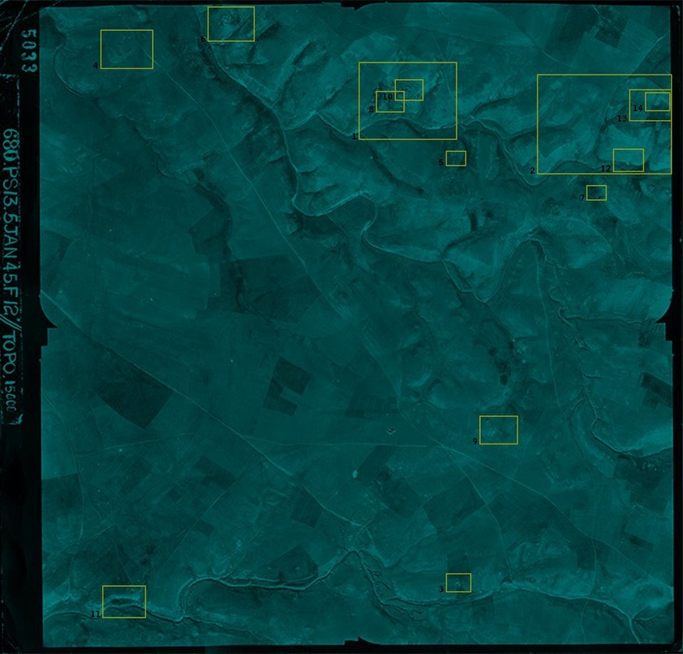 Al-Türi cemetery, detail no. 14 enlarged from image 5033, RAF series Palestine Survey, January 5, 1945.
