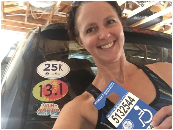 Yes, my van has running stickers on it, and yes, it’s an ironic picture, seeing my 13.1 and 25k stickers on a vehicle in a disabled spot, I get why you took the picture. The playful side of me actually hopes you and your friends got a few laughs out of the picture.