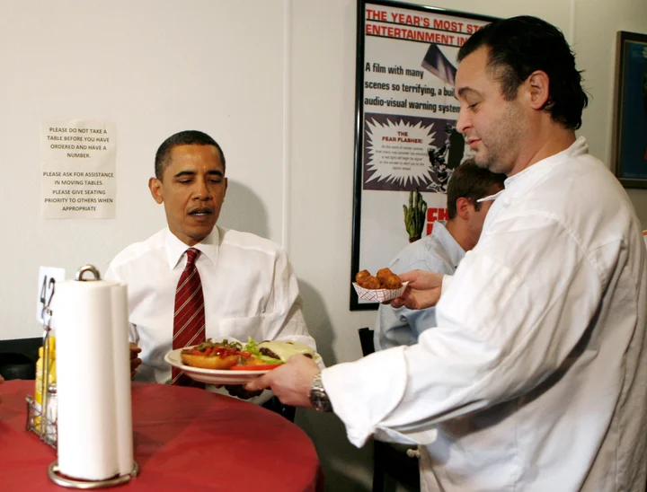 “I’m gonna have your very basic cheddar cheeseburger, medium-well,” Obama told the cashier. “I just want mustard, no ketchup. You got a spicy mustard or something like that? Dijon mustard or something?”