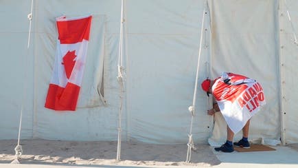 Touring camps set up for survivors of Monday's disaster, in which at least 250 people were killed, Mr Berlusconi told a reporter from N-TV: "They have everything they need, they have medical care, hot food... Of course, their current lodgings are a bit temporary. but they should see it like a weekend of camping."