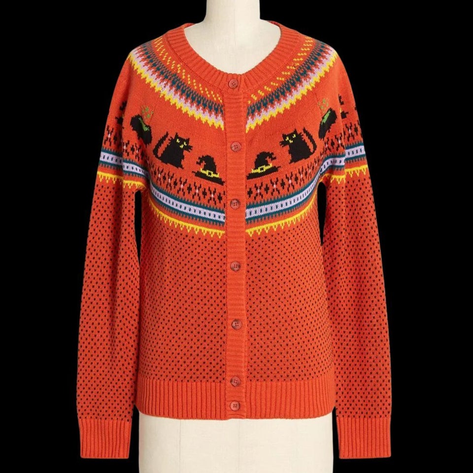 Christmas can have its ugly sweaters — I'd much rather wear this autumn button-up cardigan instead. It's made with a super soft cotton knit, is available in sizes XS-4X, and is the perfect attire for scary-movie-going or answering the door for trick-or-treaters.