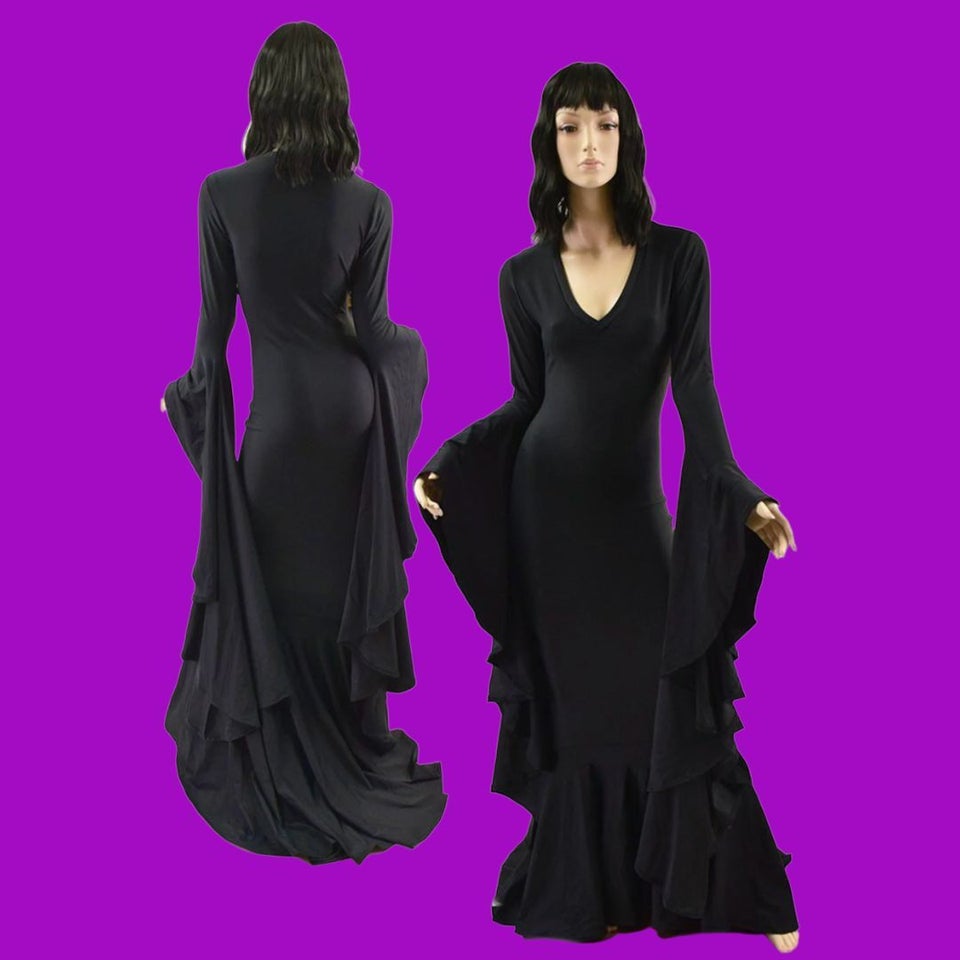 Dressing up for Halloween is arguably one of my favorite parts about the holiday, and I love when I can get multiple costumes out of one outfit. There's tons of costume versatility in this custom puddle gown that's made with a comfy knit spandex fabric. Dress up as Morticia Addams, Elvira, a witch or an evil sorceress. The options are endless!