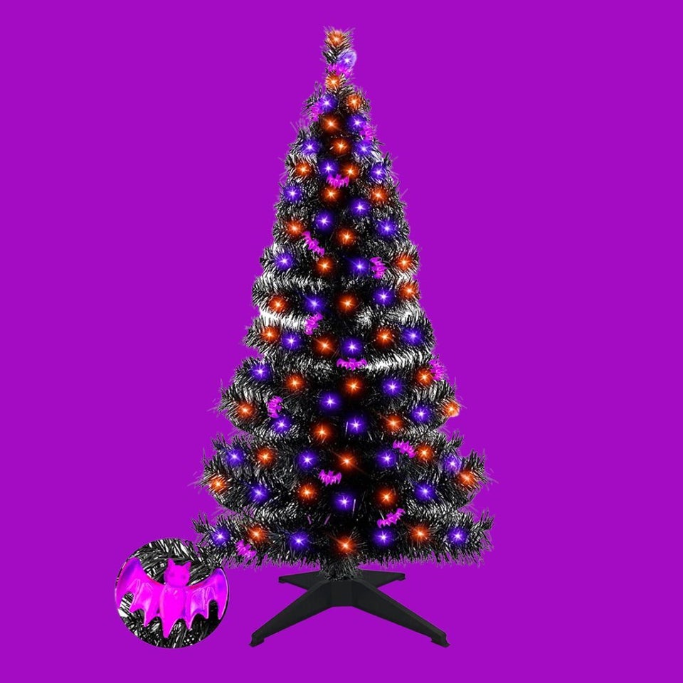 I attribute my love for Christmas and Halloween decor fusions to Tim Burton's "The Nightmare Before Christmas," a film that I quite literally know every line of. This pre-lit tree stands at 4 feet tall, is easy to assemble, and comes with little detachable bat ornaments. It also uses 3AA batteries, which can be easily hidden among the branches.