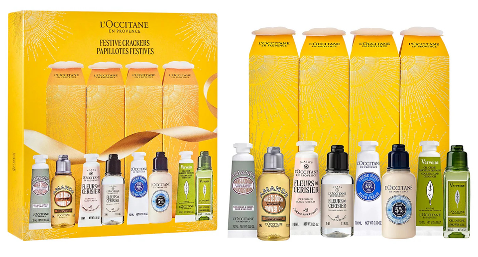 L’Occitane delivers its sensorial skincare and body care, inspired by the natural ingredients of Provence, in a playful format. The Festive Crackers gift set includes four holiday crackers, each filled with hand and shower favorites in iconic scents like almond, shea, verbena and cherry blossom. Inside every cracker, you’ll find a duo, including a 35-milliliter shower cream, gel or oil paired with a 10-milliliter moisturizing hand cream for indulgent, pampering textures, and are perfect for slipping into stockings or for placing at the dinner table.