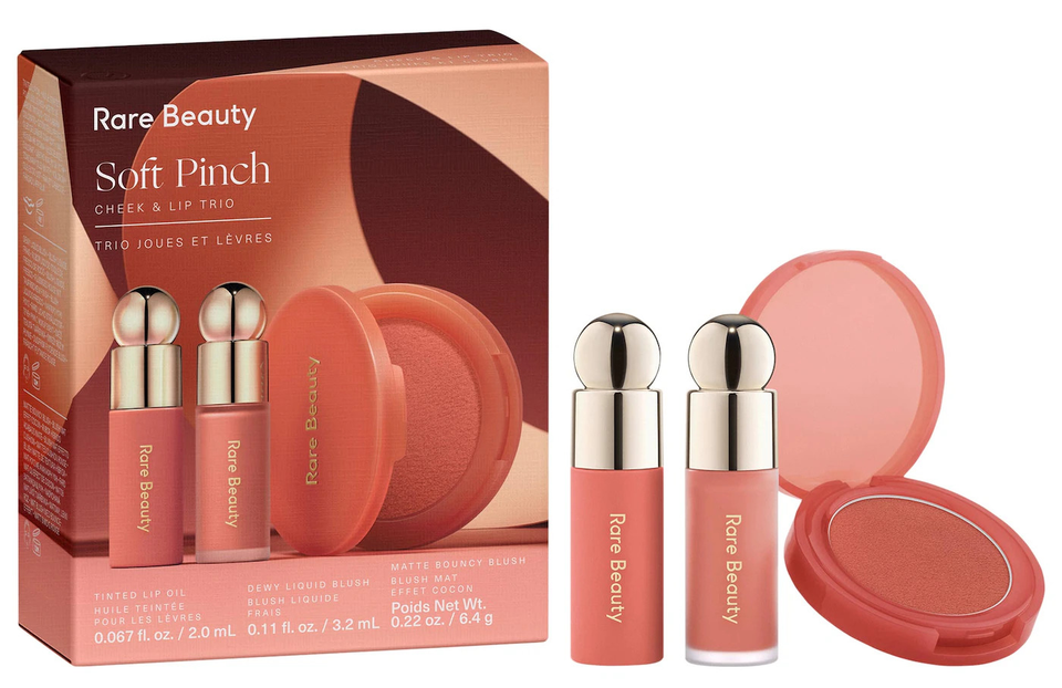 Valued at $56 and featuring the fan-favorite shade Worth, a true rose, the Rare Beauty Soft Pinch cheek and lip trio makeup gift set includes the full size Soft Pinch matte bouncy blush for a dreamy, cloud-like flush, the mini Soft Pinch liquid blush with a dewy, weightless formula that delivers high-impact color in just one dot, and the mini Soft Pinch tinted lip oil, a comfy, nonsticky formula that leaves lips looking softly plumped thanks to nourishing jojoba and sunflower seed oils. At a $56 value, this trio offers a hefty $20 off the price of these items individually.