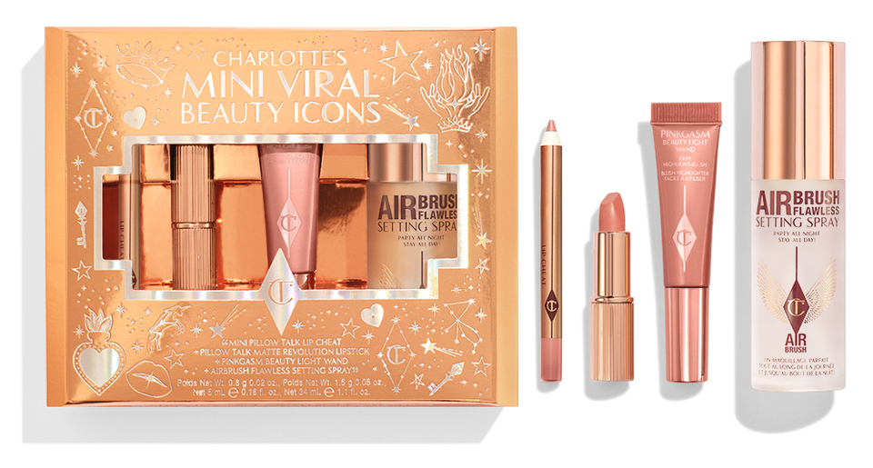 Achieve a flawless finish with the Charlotte Tilbury Charlotte's Mini Viral Beauty Icons, which features travel-size versions of the ever-popular Pillow Talk line, a flattering nude-pink that suits many skin tones. Line your lips with Lip Cheat, swipe on the Matte Revolution lipstick and add a touch of radiance with the Beauty Light wand in Pinkgasm, which glides on effortlessly and blends like a dream. Finish with the Airbrush Flawless setting spray to help makeup last while keeping your glow intact all day. Valued at $72, you save 25% on this bundle.