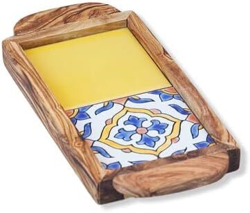 Try this funky but functional tray if you're looking to bring something out of the ordinary. This beautiful piece from Kamsah is made from a mix of ceramic and olive wood. It can be used as serving ware or just eye-catching decor for a coffee table.