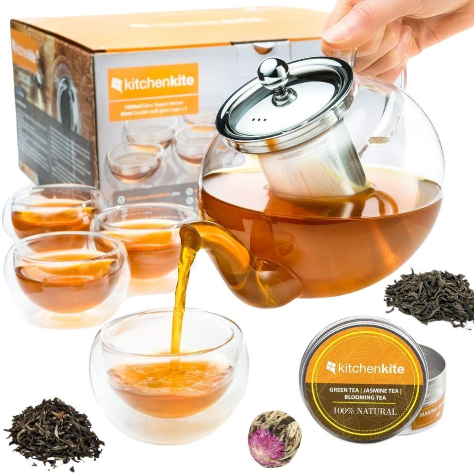 Hosting can be stressful. Help them decompress by gifting Kitchen Kite's highly-rated glass tea set, which comes with a teapot, four teacups, a removable diffuser and three tea flavors. The teapot is also microwave and dishwasher safe.