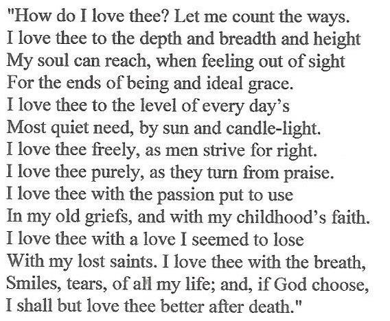Written in 1845, Elizabeth Barrett Browning's 43rd sonnet reads as follows: