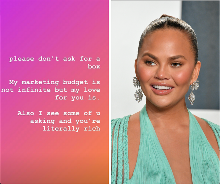 “Please don’t ask for a box. My marketing budget is not infinite but my love for you is. Also I see some of u asking and you’re literally rich,” she wrote.