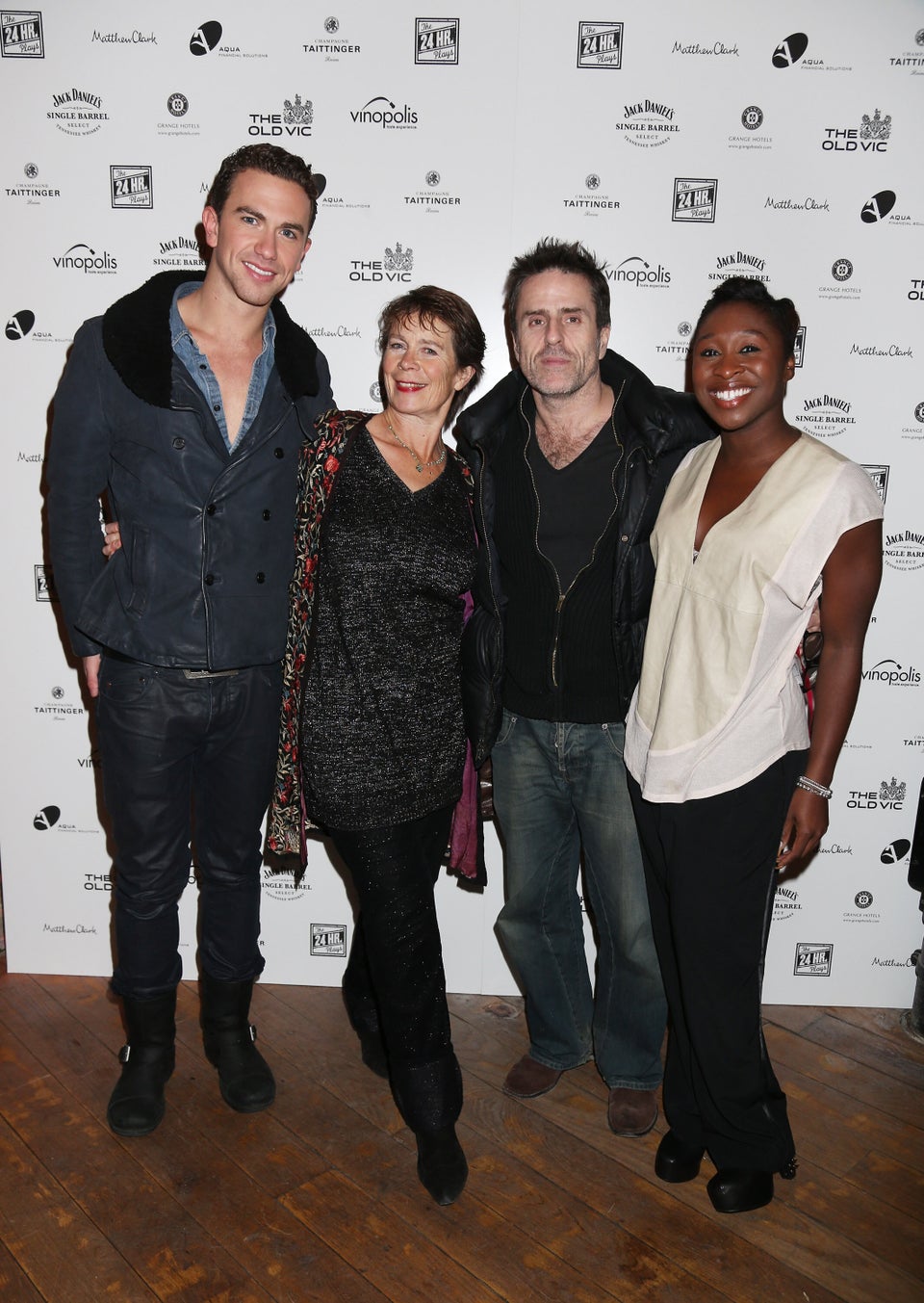 Erivo with Richard Fleeshman, Celia Imrie and Con O'Neill at a post-show party following The Old Vic's 24 Hour Musicals Celebrity Gala in London on Dec. 9, 2012.