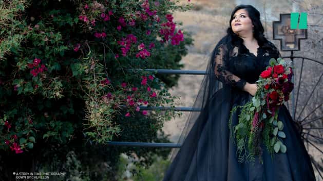 A white wedding dress is classic and lovely, but there’s something rad about a bride with the confidence to buck tradition and wear a gown in black, navy blue or a deep green instead. Below, 23 dark-colored gowns that will strike your fancy.