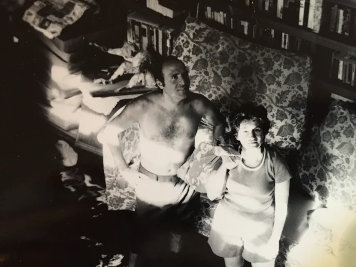 My parents in our flooded living room after Tropical Storm Doria. The water would rise to 6 feet.