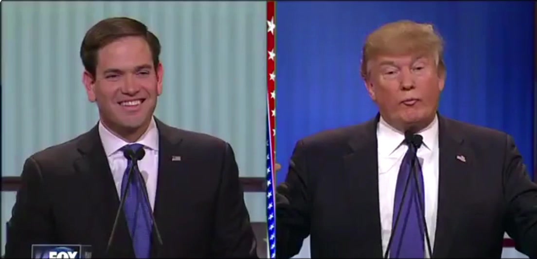 As the Republican presidential debate got underway in Detroit, Trump took the opportunity to rebut something that Florida Sen. Marco Rubio had teased him about earlier in the week.