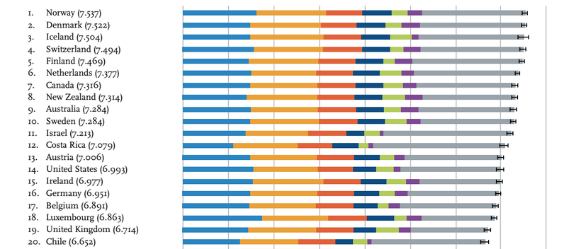To measure happiness, the report looks at GDP per capita, social support, freedom to make choices, health (both mental and physical), generosity and perception of corruption. The report also compares countries to one another and ranks them according to their happiness levels.