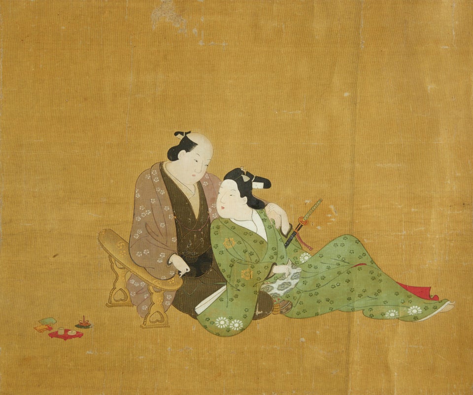 While most marriages at the time were arranged -- and between a man and a woman -- sex between two men was not at all uncommon, though often kept out of public view. For the most part, such erotic encounters were allocated to three spheres: red-light style pleasure districts, kabuki theater, and shunga, or erotic art.