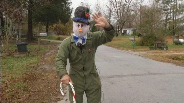 A man wearing the head from an inflatable Frosty the Snowman decoration as a mask terrorized residents of small town Vanceboro, N.C. on Sunday night, according to TV station WCTI.