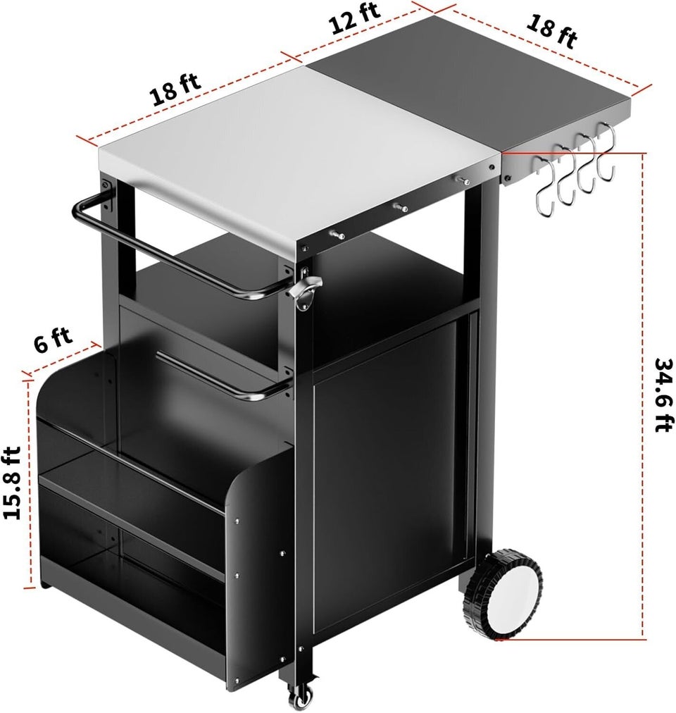 A larger version of the first cart on this list that combines many qualities of the other carts on this list, this grill cart offers larger cabinet storage space. That's in addition to the built-in features like the spice rack, paper towel holder, tool hooks, wheels with a brake system and a stainless steel countertop. Move it indoors and outdoors as needed to get the most use out of its amenities and space for grilling, meal prep and more.
