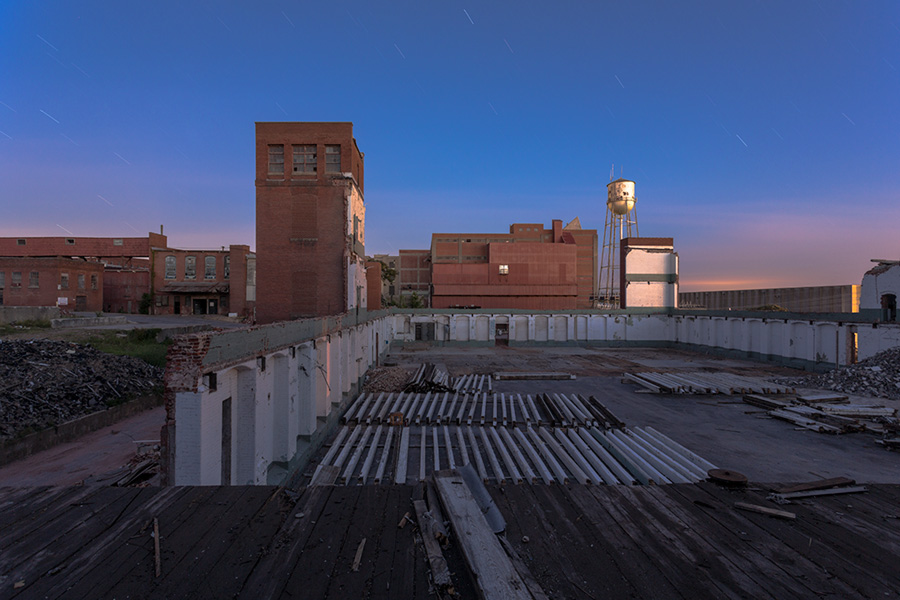 A few rays of sunlight still hit the Schoolfield Complex of Dan River Inc in 2012, as the century-old textile mill was being systematically torn down for salvage.