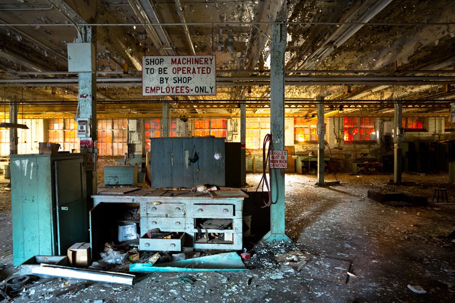 Roughly 50% of the complex had not been systematically stripped of anything of value, and then systematically dismantled for salvage, and was still standing. Some of the various buildings were fairly barren, but in many cases, one could round a corner and see places where, were it not for the peeling paint, cobwebs, and omnipresent dust, one would think that the workers were just about to punch back in.