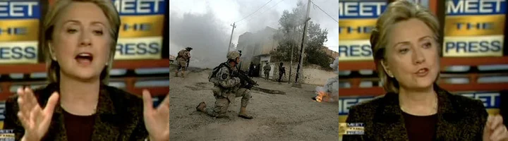 This morning on Meet the Press, Hillary Clinton defended her 2002 vote for the Iraq war resolution, saying that she "thought it was a vote to put inspectors back in" so Saddam Hussein could not go unchecked. She insisted that she and others were "told by the White House personally" that this was the purpose of the resolution, and cited President Bush's assurances to defend her position.