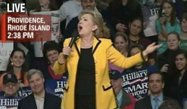 Today, Clinton was at a campaign rally in Providence, Rhode Island, and she mocked Obama and his message of hope and change in a very theatrical, over-the-top manner.