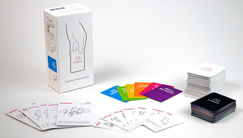 8. This listicle was originally supposed to include seven games; this game was so great I had to change the title to make sure I included it. This superbly well-designed game was published in 2010 in Brooklyn, NY, and it therefore predates CAH while also surpassing it in quality and excellence. Designed by Colleen Macklin, John Sharp, and Eric Zimmerman, this game is published independently by an organization dedicated to the purpose, Local No. 12. This game takes conversation and makes it into a game, guiding players into interesting discussions that they might not ordinarily have. Moreover, there are six different ways of playing the game, which means that the deck has a lot more functionality than CAH. Watch an example of gameplay here. They have two expansions out currently, one about films and one about science fiction. Like CAH, you can buy it on Amazon or print and play it for free.
