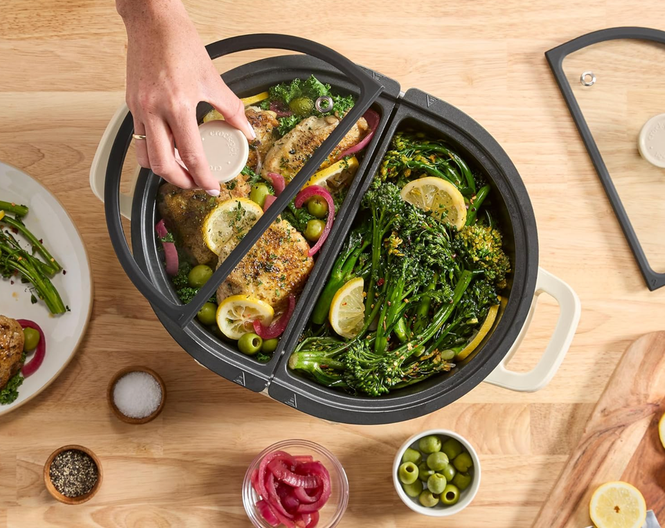 This is one of Crock-Pot's more recent innovations, and it is a slow cooker game-changer, allowing you to cook multiple meals or dishes simultaneously — making it ideal for Thanksgiving. This dual slow cooker takes everything we love about the OG Crock-Pot and doubles it, using ingenious technology that allows you to use different temperatures and cook functions at the same time. It is easily programmable and gives you the ability to sear foods and cook them in the same pot, creating incredibly flavorful outcomes without a lot of mess.