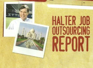 "When Bill Halter was getting rich on corporate boards, outsourcing just meant more profits," the mailer reads. "But now that Halter's running for office, he's suddenly upset that 'our jobs are being shipped overseas.' Can we really trust Bill Halter to stop outsourcing - after his company sent American jobs to India?"