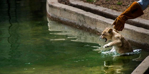 After the cubs complete their test, which takes about 30 seconds, they get dried off by the Great Cats keepers and let back into their encampment.