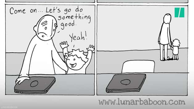 Today, Lunarbaboon has more than 900,000 followers on Facebook. In April, Andrews McMeel Publishing released a book compilation of Grady’s comics called Lunarbaboon: The Daily Life of Parenthood.