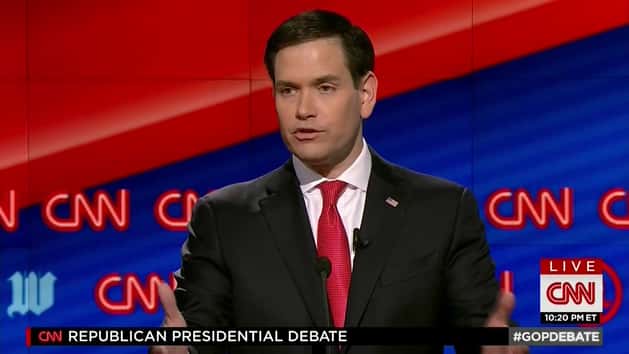 Jake Tapper, moderator of Thursday night's CNN Republican debate, asked Sen. Marco Rubio (Fla.) about climate change's impact on southern Florida, citing the concerns raised by Miami's Republican Mayor Tomás Regalado.