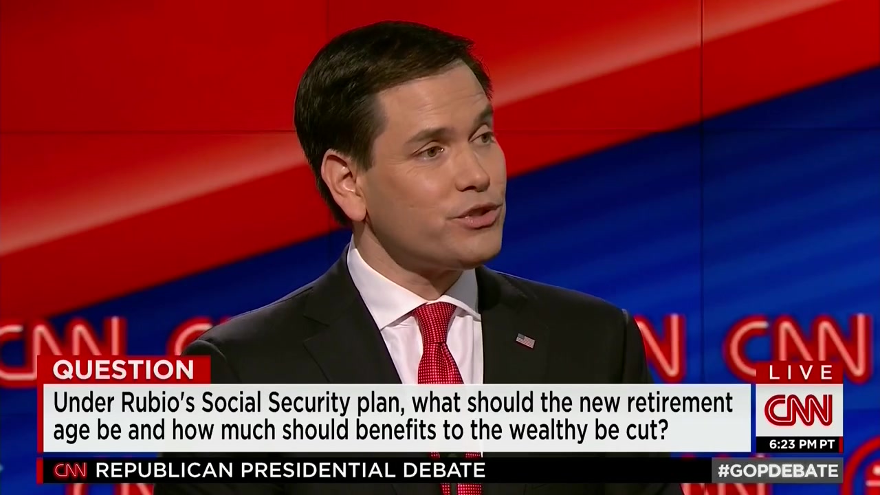 Sen. Marco Rubio (R-Fla.) didn't want to answer the question during Thursday night's Republican debate, but CNN's Dana Bash forced him to say how high he'd raise the retirement age for full Social Security benefits.