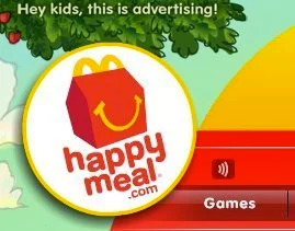 Amusingly, HappyMeal.com features a message in the upper left-hand corner that reads, "Hey kids, this is advertising!"