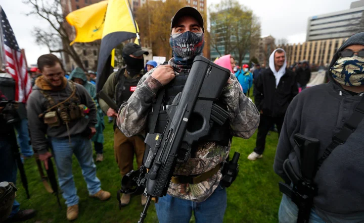 Late last month, private militiamen carrying high-capacity, semi-automatic rifles shouted from the Michigan State Capitol galleries while lawmakers on the floor below debated an extension of the stay-at-home order issued by Gov. Gretchen Whitmer (D) to curb the coronavirus pandemic. At least one state representative wore a bulletproof vest.