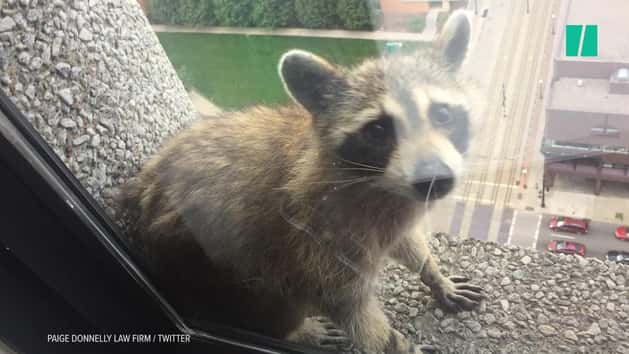 This story has been updated to note the raccoon reached the roof, was trapped and was later set free.