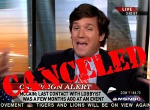 ORIGINAL ITEM: TVNewser is reporting that MSNBC will announce Monday that Tucker Carlson's TV show is being canceled:
